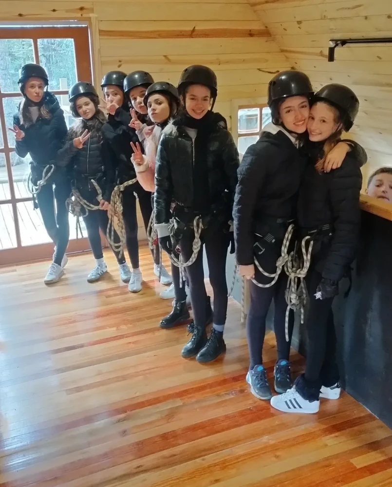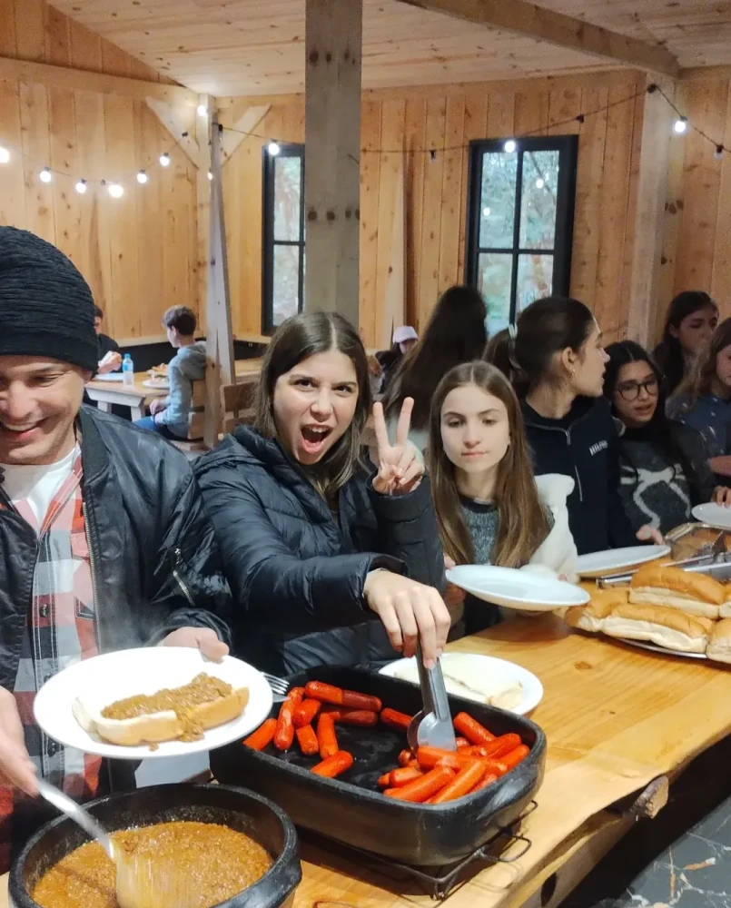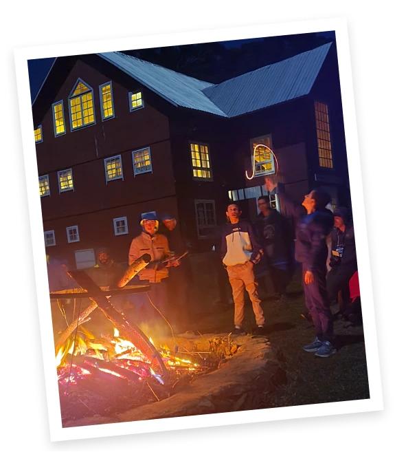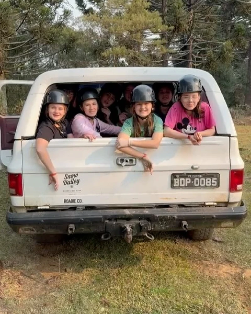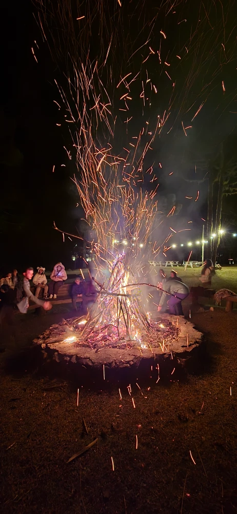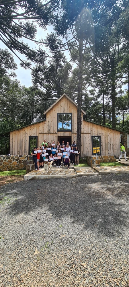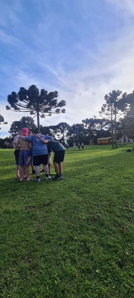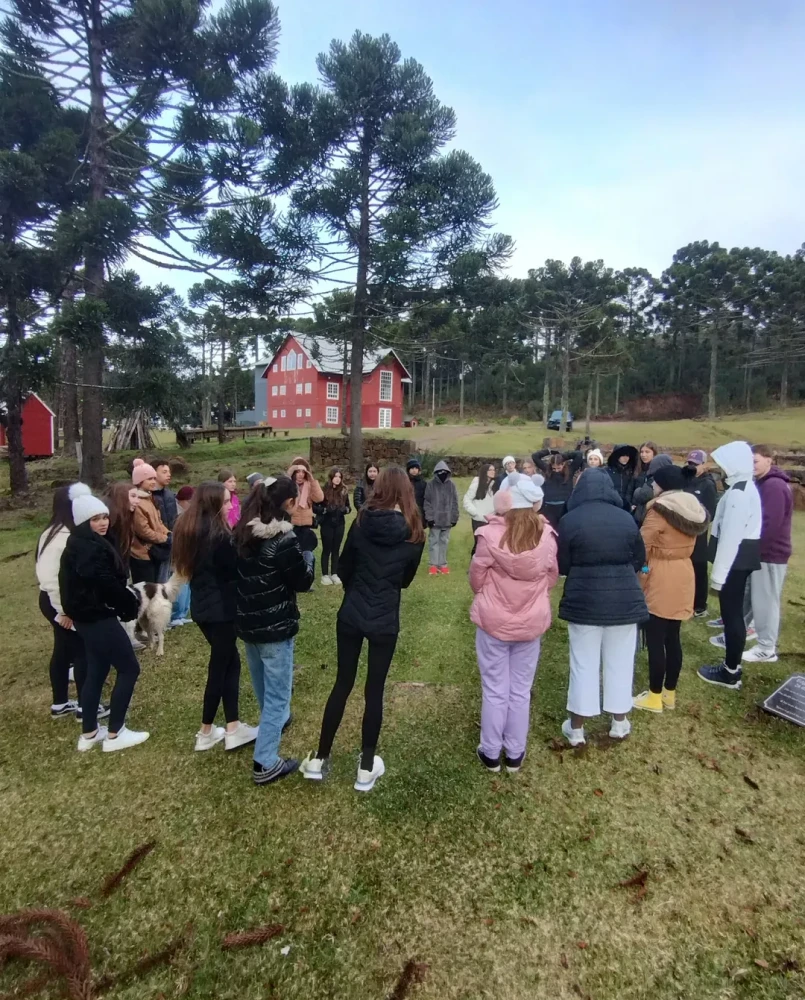 Tirolesa, arvorismo, trilha sensorial, jogos cooperativos, fogueira com prática do idioma.