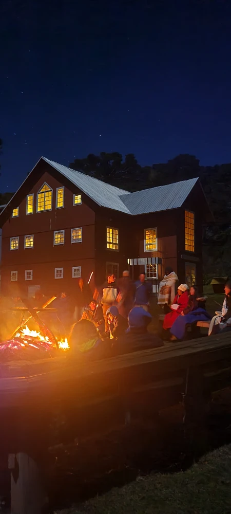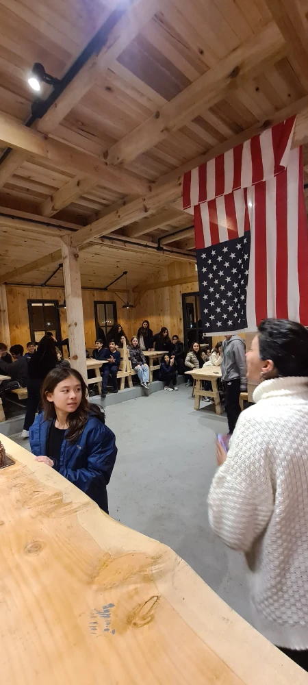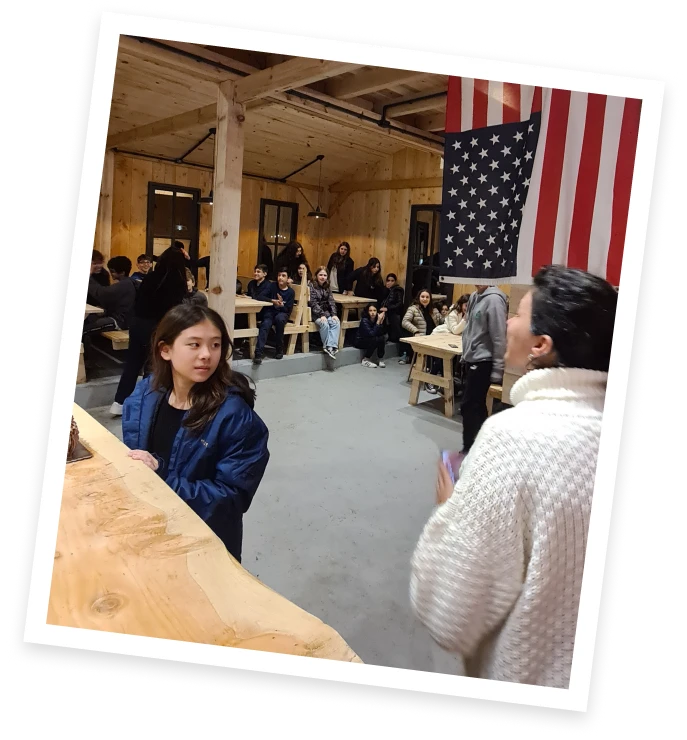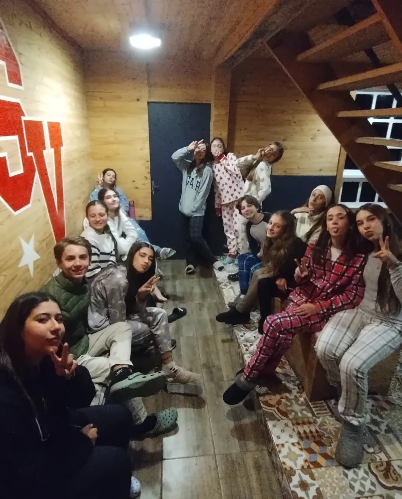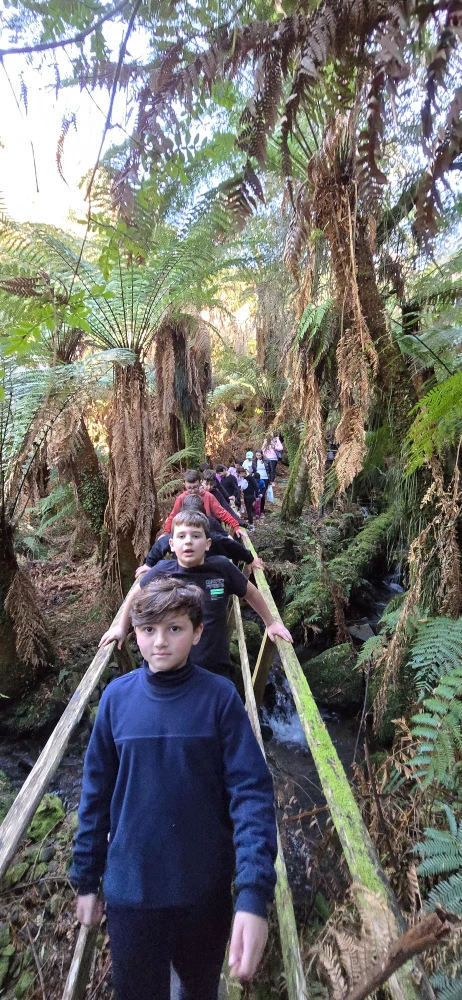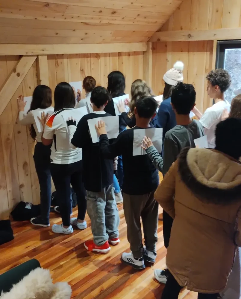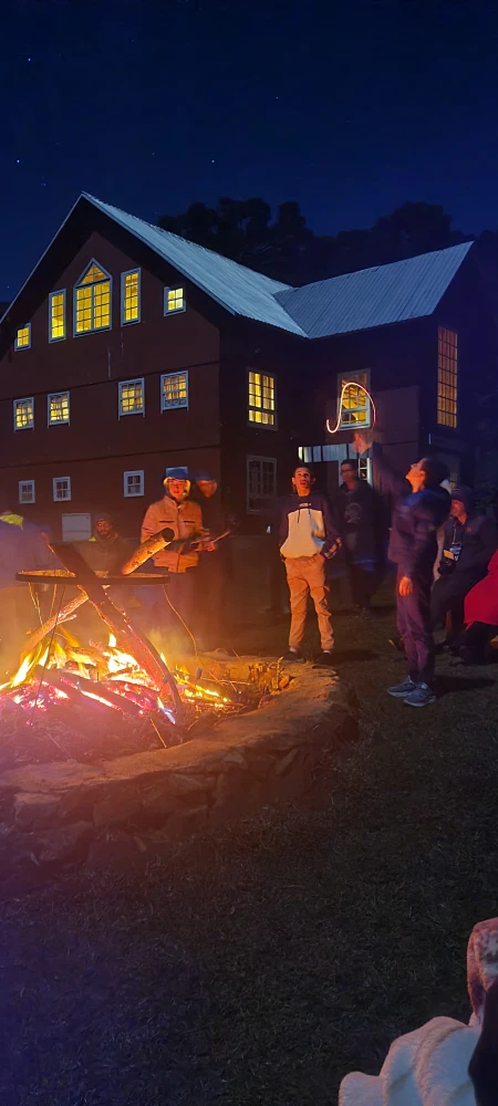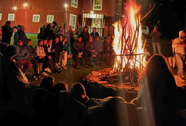 Tirolesa, arvorismo, trilha sensorial, jogos cooperativos, fogueira com prática do idioma.